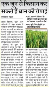 उधम सिंह नगर मुख्य कृषि अधिकारी डॉ. अभय सक्सेना ने बताया कि खरीफ मौसम वर्ष 2025 में उगाई जाने वाली धान की फसल के लिए कृषक एक मई के बाद धान की नर्सरी लगाने का कार्य कर सकते हैं। इसके अलावा एक जून यानी के आज से धान रोपाई का कार्य भी बिना किसी प्रतिबंध के साथ कर सकते हैं।